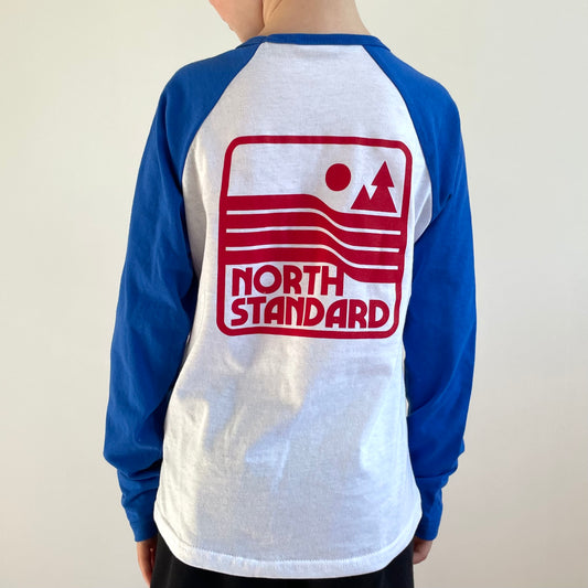 Kids Parks & Rec Baseball Tee - Royal/White with Red