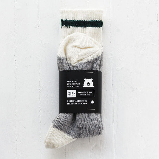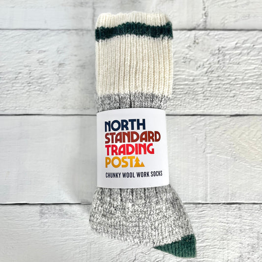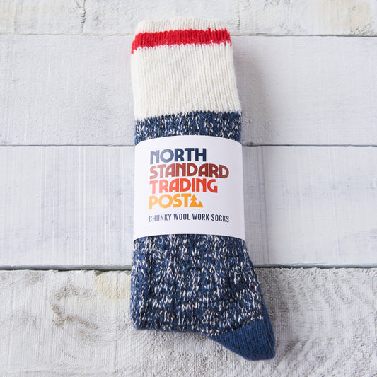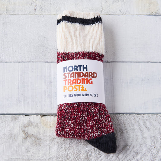 Chunky Wool Work Sock - Oatmeal with Red Stripe